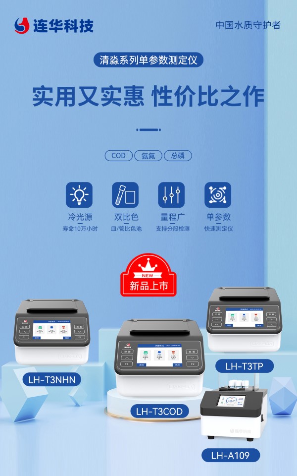 采用冷光源、窄帶干涉技術(shù)的清淼系列LH-T3單參數(shù)水質(zhì)測定儀,光源壽命長達10萬小時,保證了測量的穩(wěn)定性和準確性。同時,全新的9孔智能消解儀,經(jīng)濟實用,大大提高了檢測效率。
