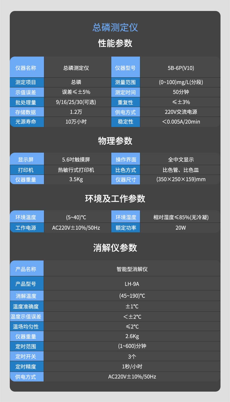 總磷低量程-管 鉬酸銨分光光度法 總磷高量程-預制 釩鉬黃分光光度法