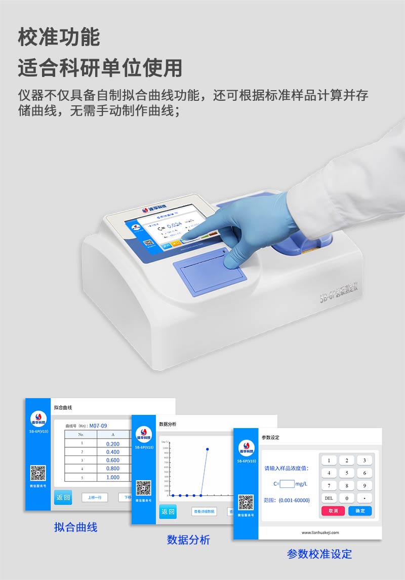4、校準功能:儀器自備校準功能,可根據標準樣品計算并存儲曲線,無需手動制作曲線;